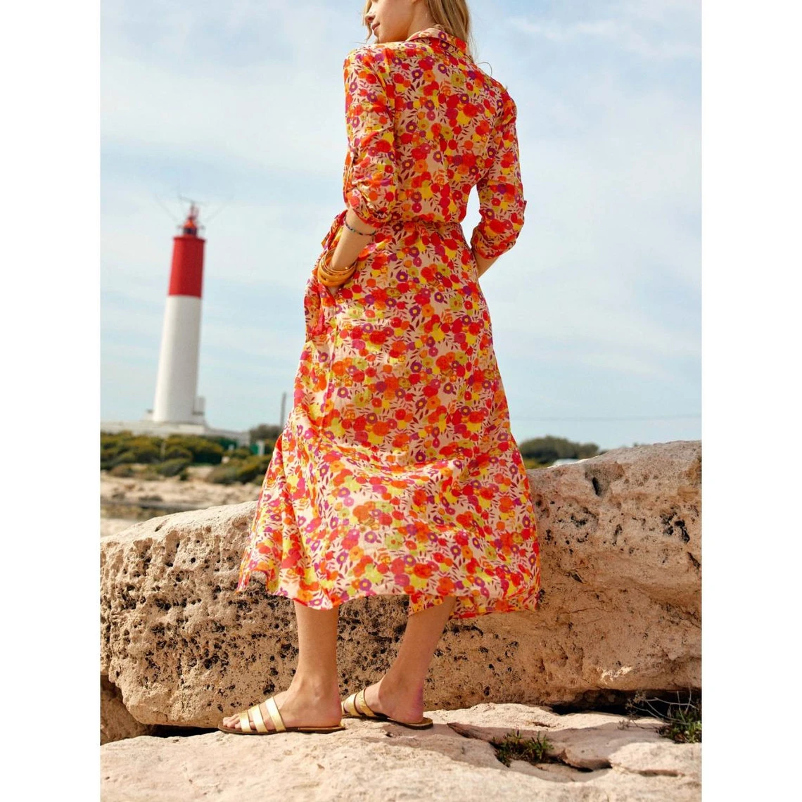 Chic et tendance, cette Robe ANETH mérite de vous accompagner en toute occasion. Longue et sublimée par des motifs colorés, elle se distingue par la ceinture la resserrant à la taille.