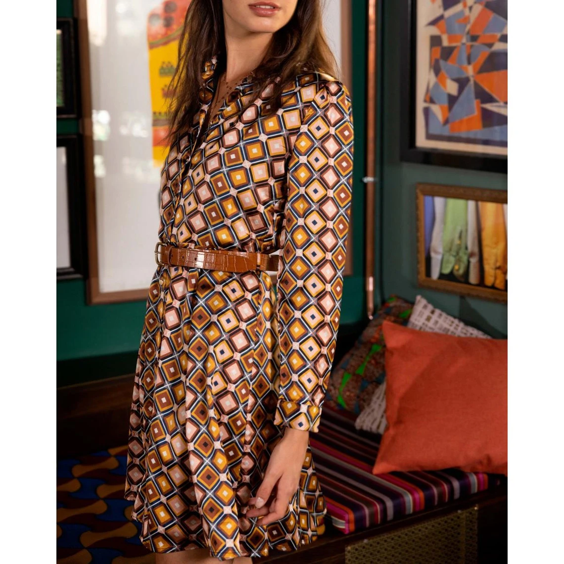 Laissez vous charmer par cette belle Robe carreau DOLA de la marque La Petite Etoile. Elle séduit avec son motif graphique doré et son tissu satiné qui rehausse votre élégance. Tendance et élégante, elle peut se porter en diverses occasions.