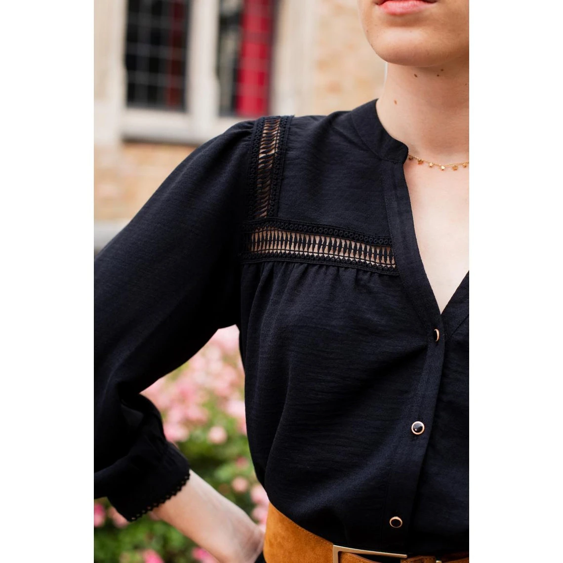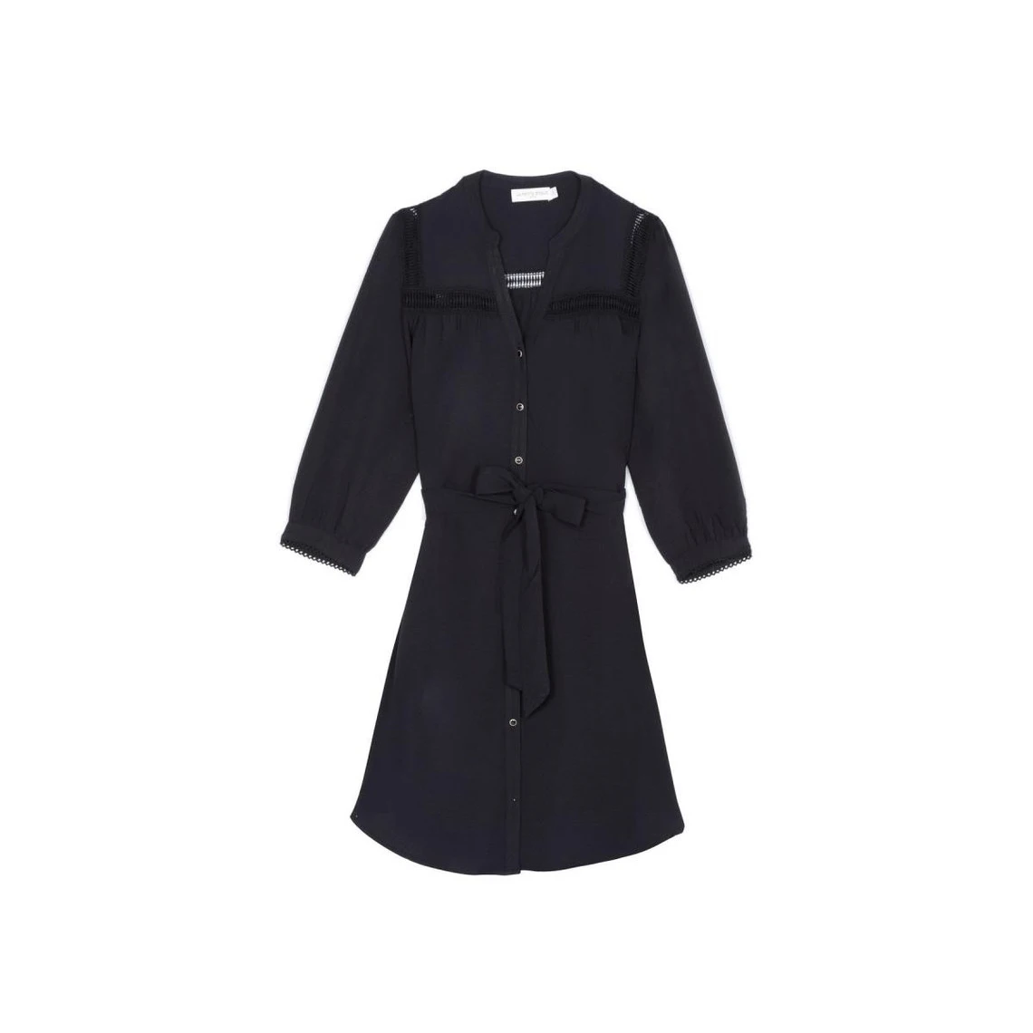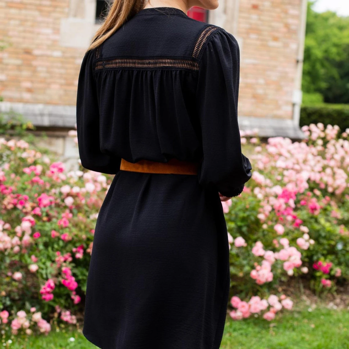 Cette Robe courte noire BENJA mĂȘle parfaitement fĂ©minitĂ© et confort. BoutonnĂ©e Ă lâavant, elle est rĂ©alisĂ©e dans un tissu doux et agrĂ©able au toucher. Des dĂ©tails en dentelle ajourĂ©e viennent la sublimer.