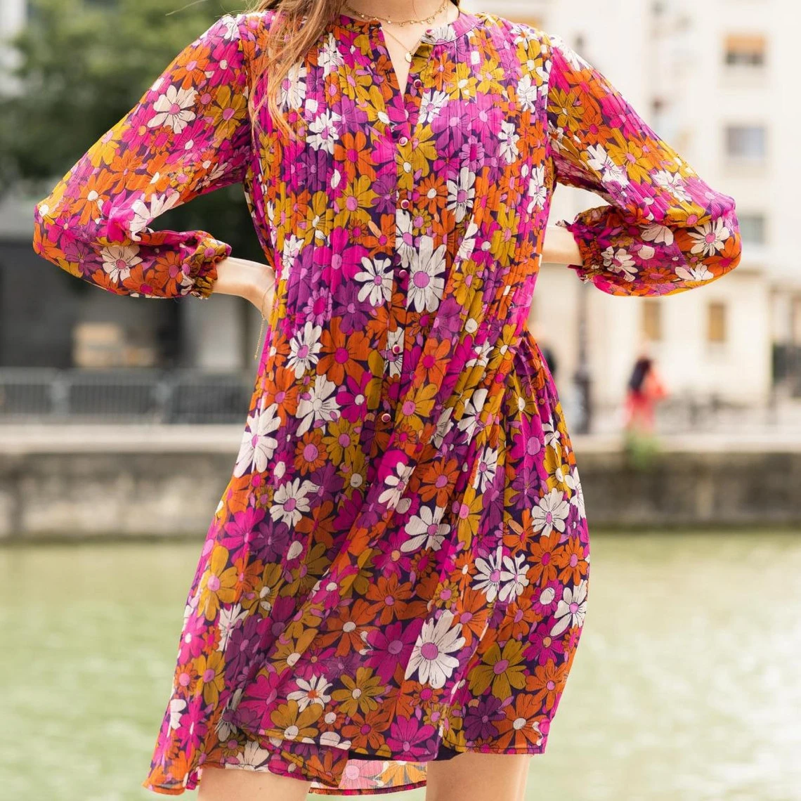 On raffole de la fluidité et de la légèreté de cette Robe fleurie BEMAYA. Confectionnée dans un tissu à imprimé floral multicolore, elle s’incruste parfaitement dans toute garde-robe féminine.