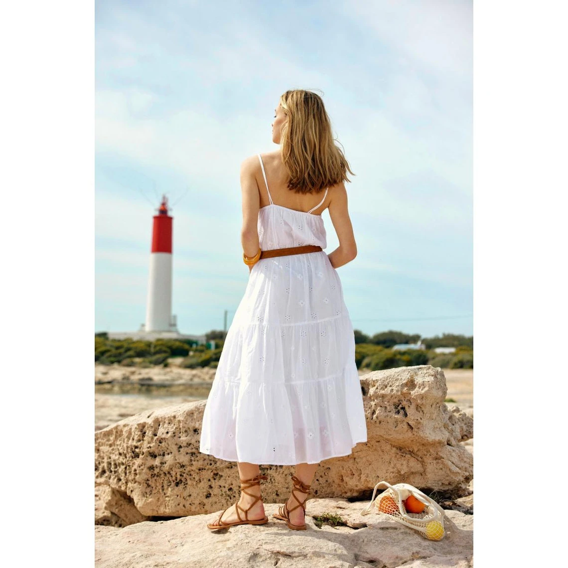 Parfaite pour l’été et mi-longue, découvrez cette Robe IRISS proposée dans une couleur blanche intemporelle. Boutonnée à l’avant et à volants, elle présente un décolleté en V séducteur et de fines bretelles.
