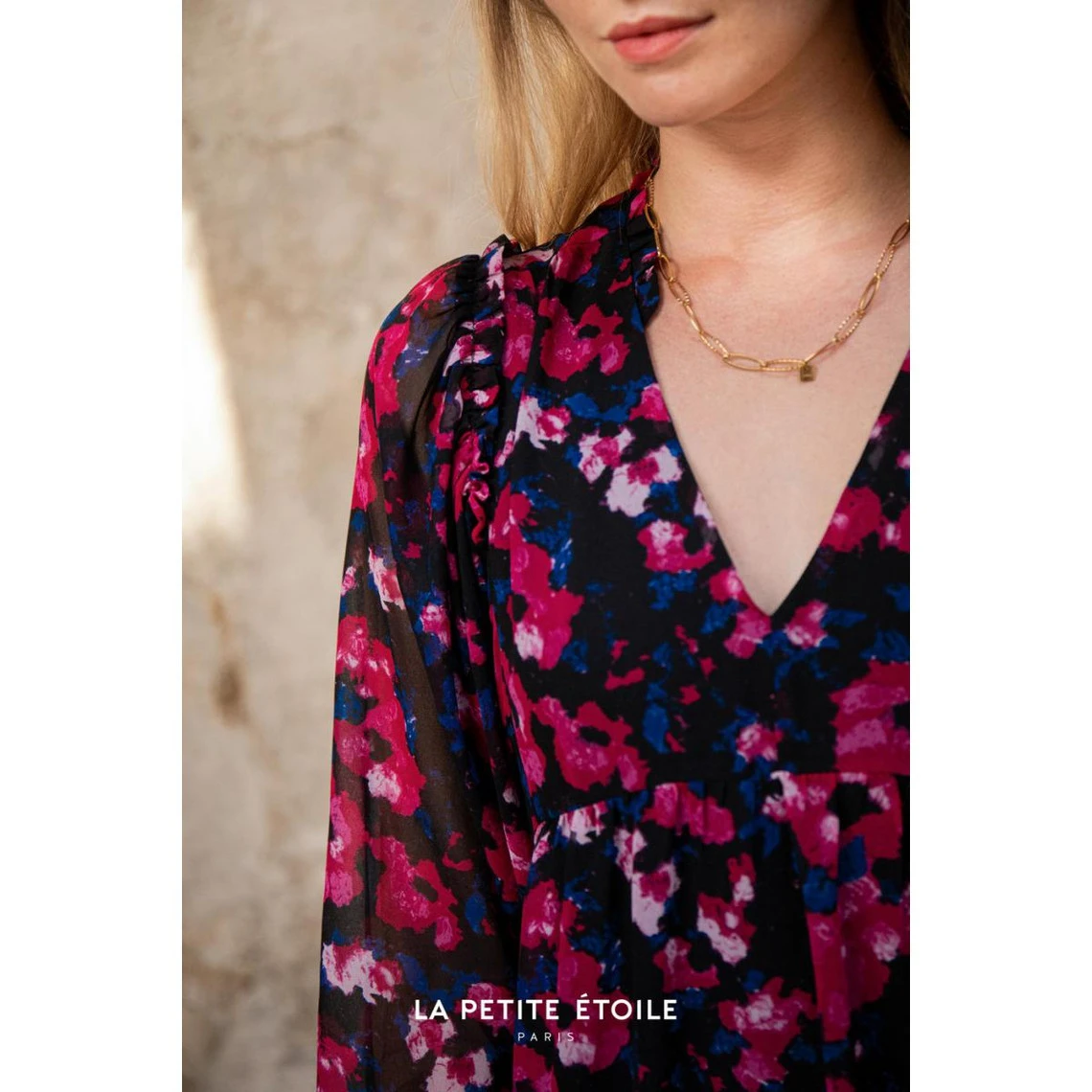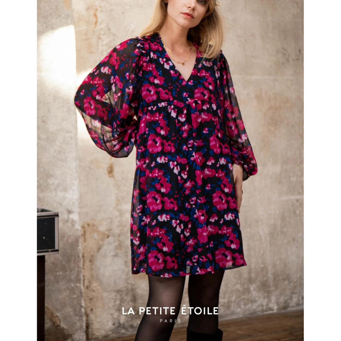 Mettez en avant votre beauté avec cette jolie Robe OSANA imprimée de fleurs rosées. Ses manches volantes et son doux tissu vous procurent une sensation de légÚreté.