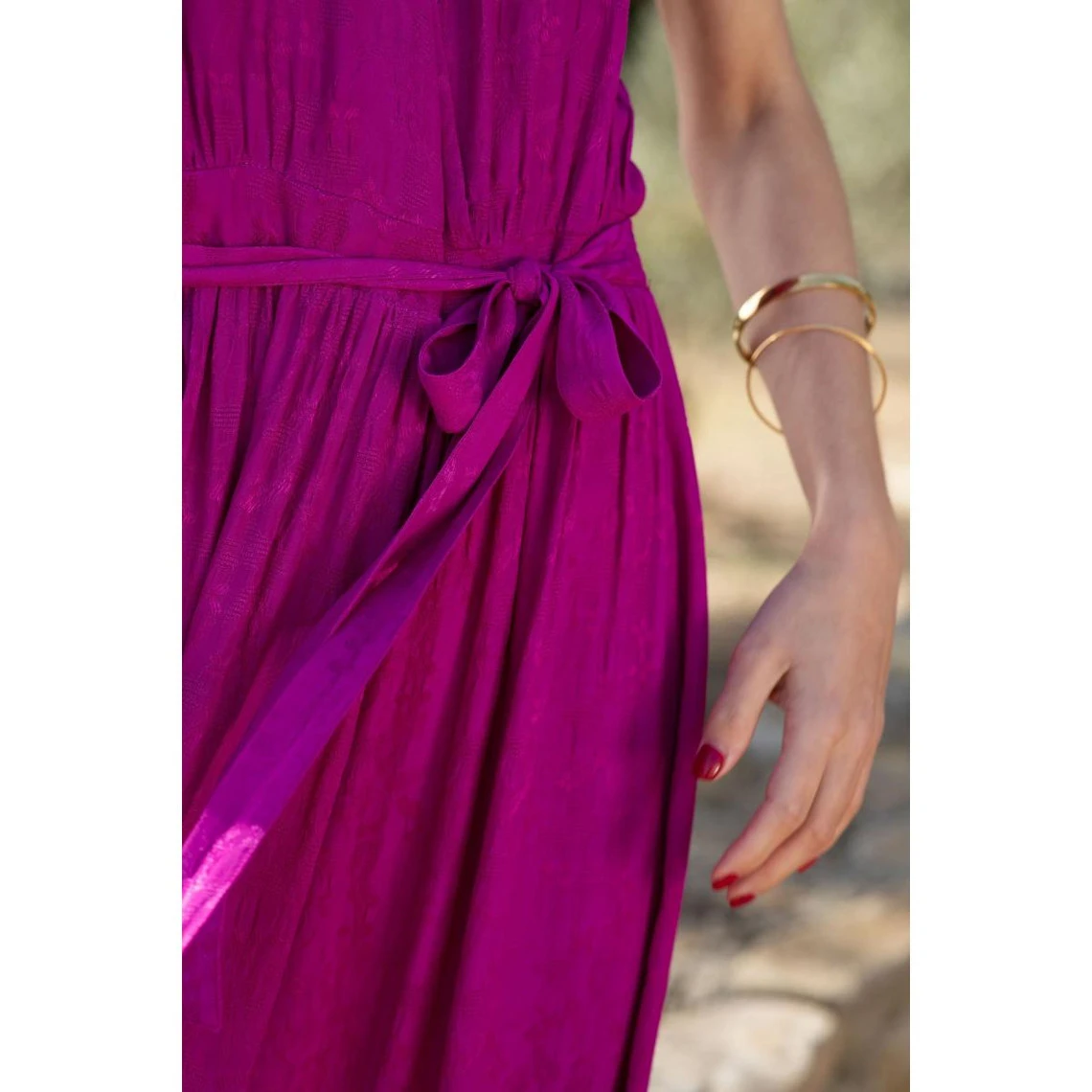 Vous allez sûrement adorer cette Robe YVORA. Fluide et longue, elle propose une encolure en V trÚs flatteuse et des manches courtes à volants. Une ceinture à nouer vient marquer sa taille.