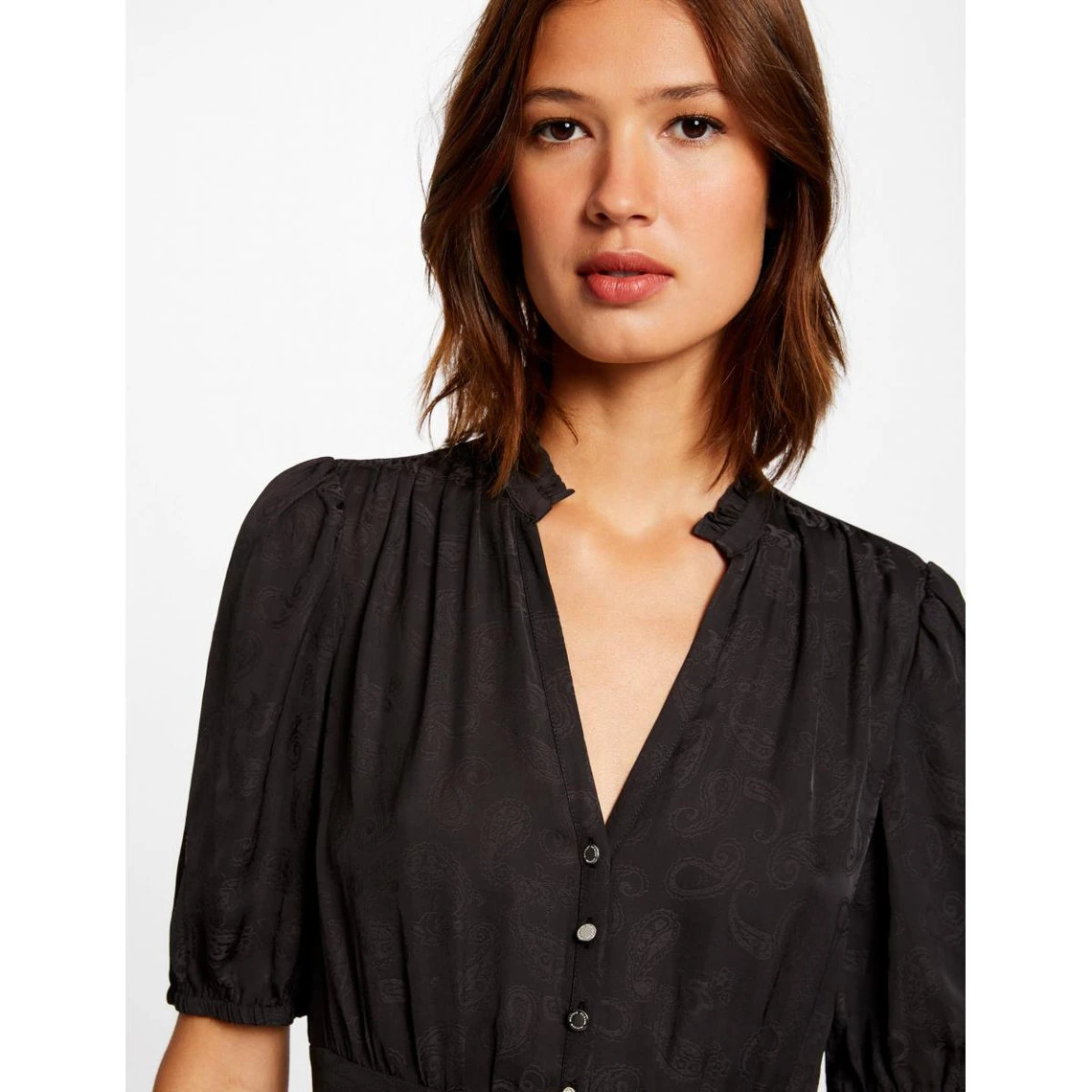 Le mannequin mesure 1m75 et porte une taille S/36