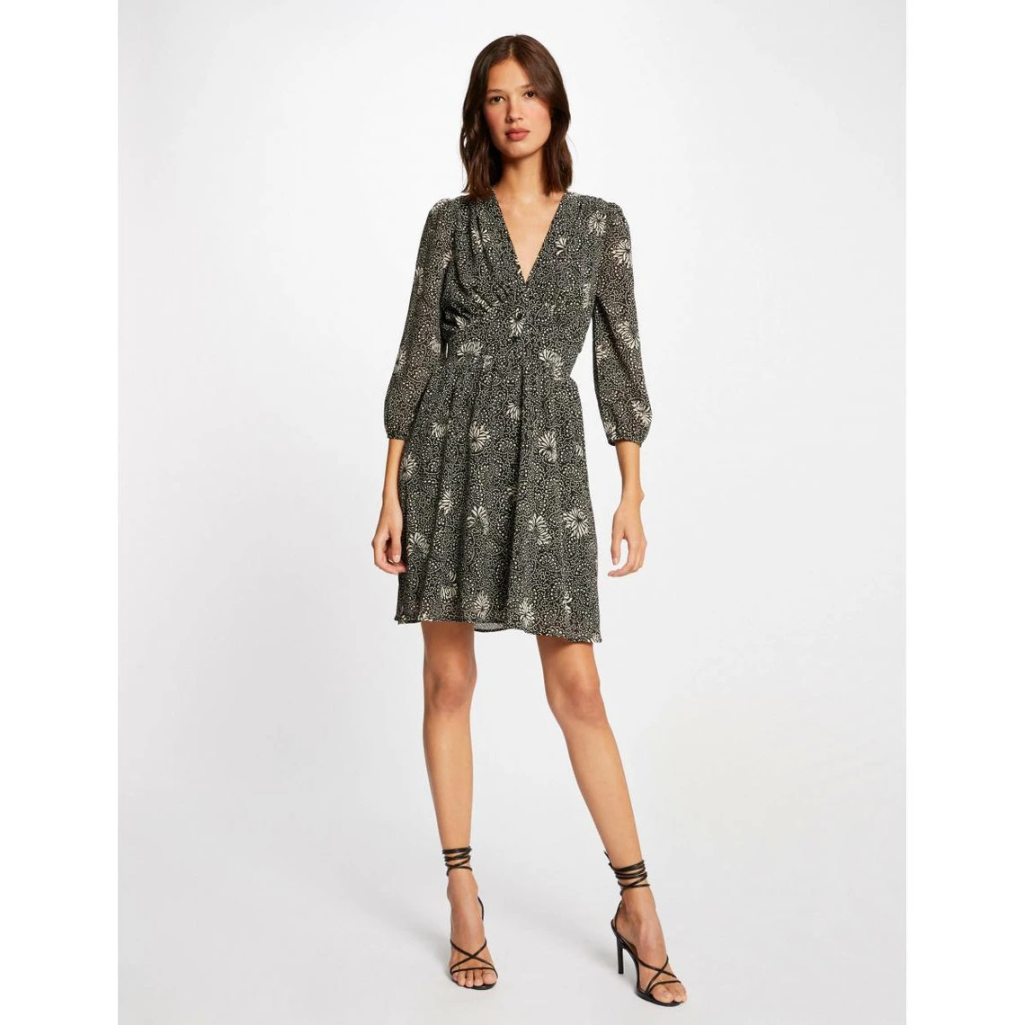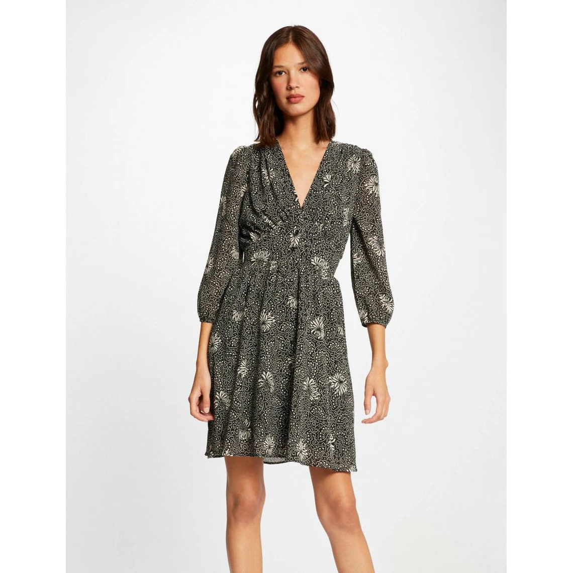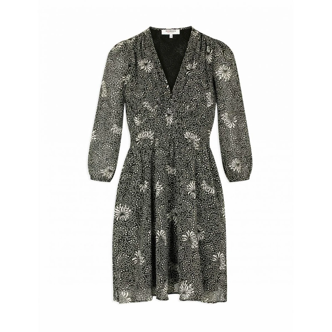 Robe évasée manches 3/4 imprimé végétal