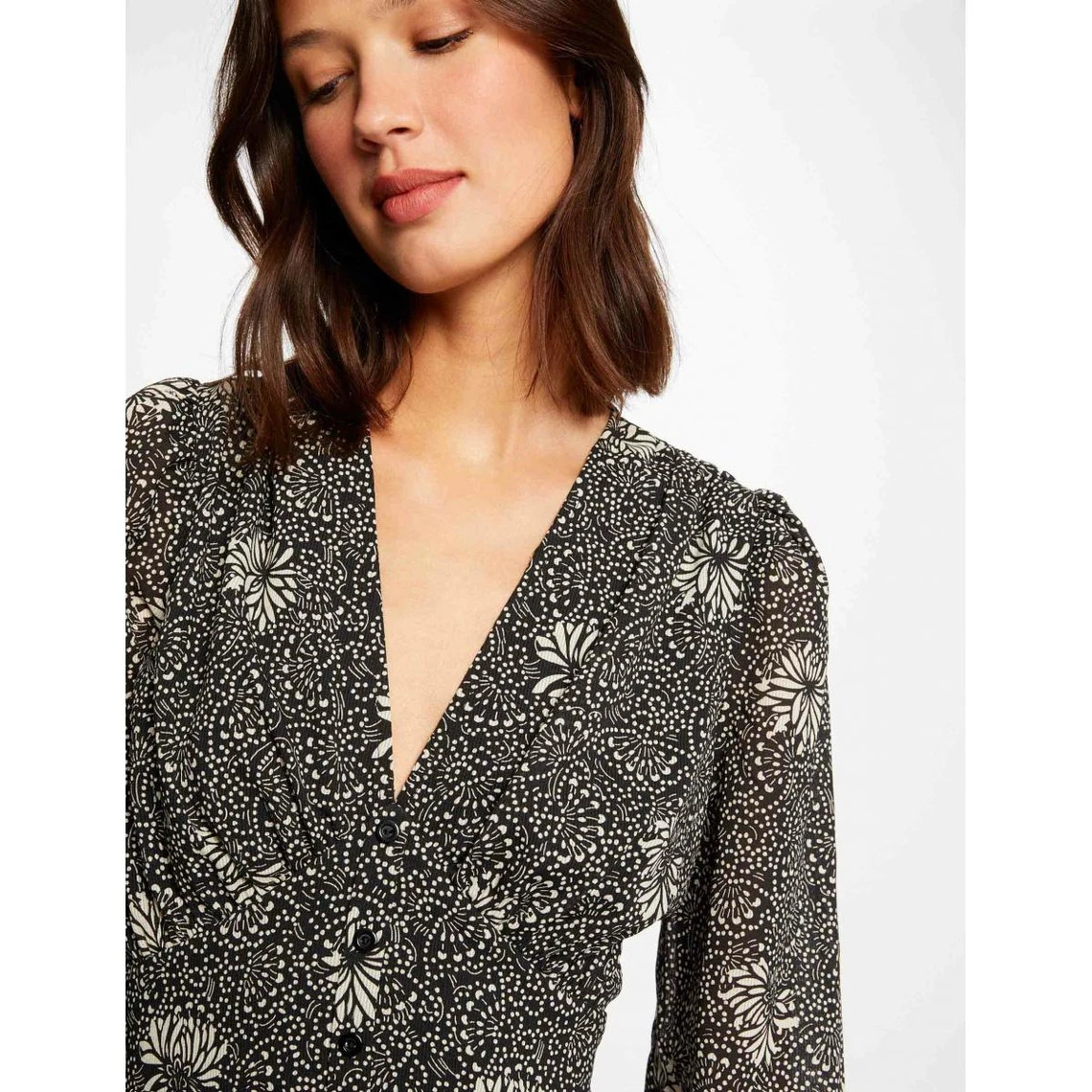 Le mannequin mesure 1m75 et porte une taille S/36