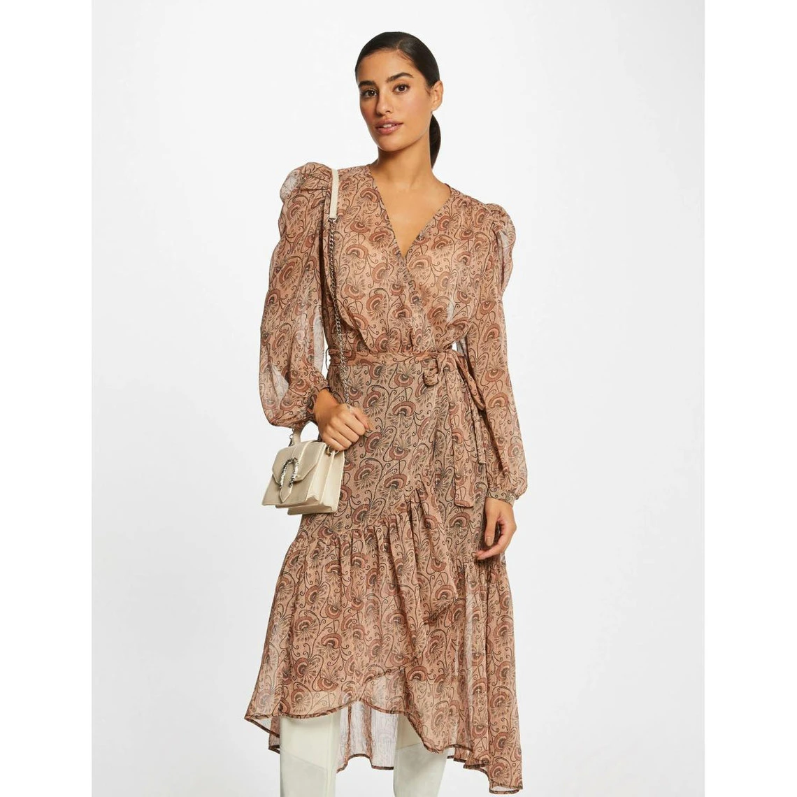 Robe longue portefeuille imprimé végétal