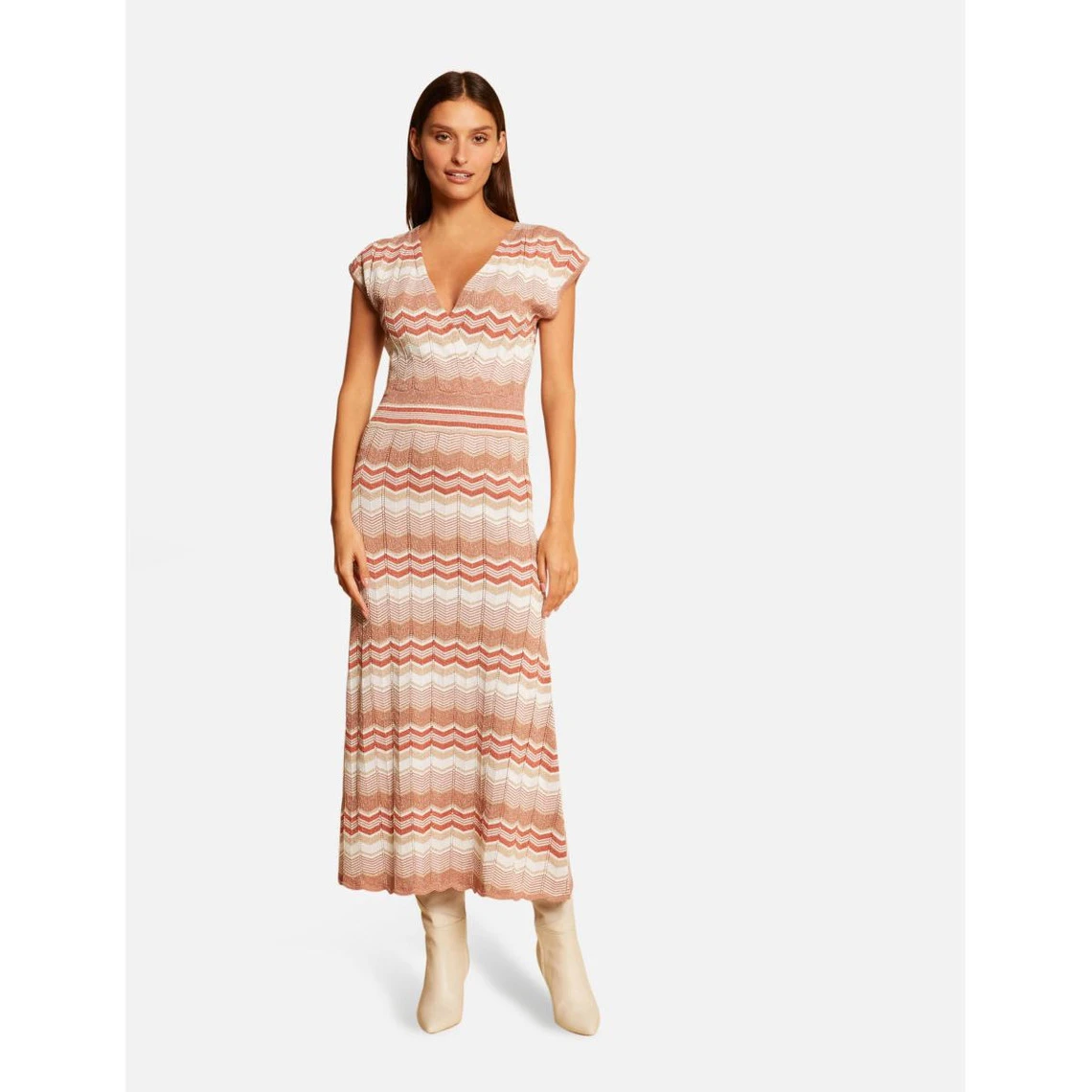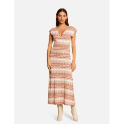 Robe pull longue droite imprimé chevron