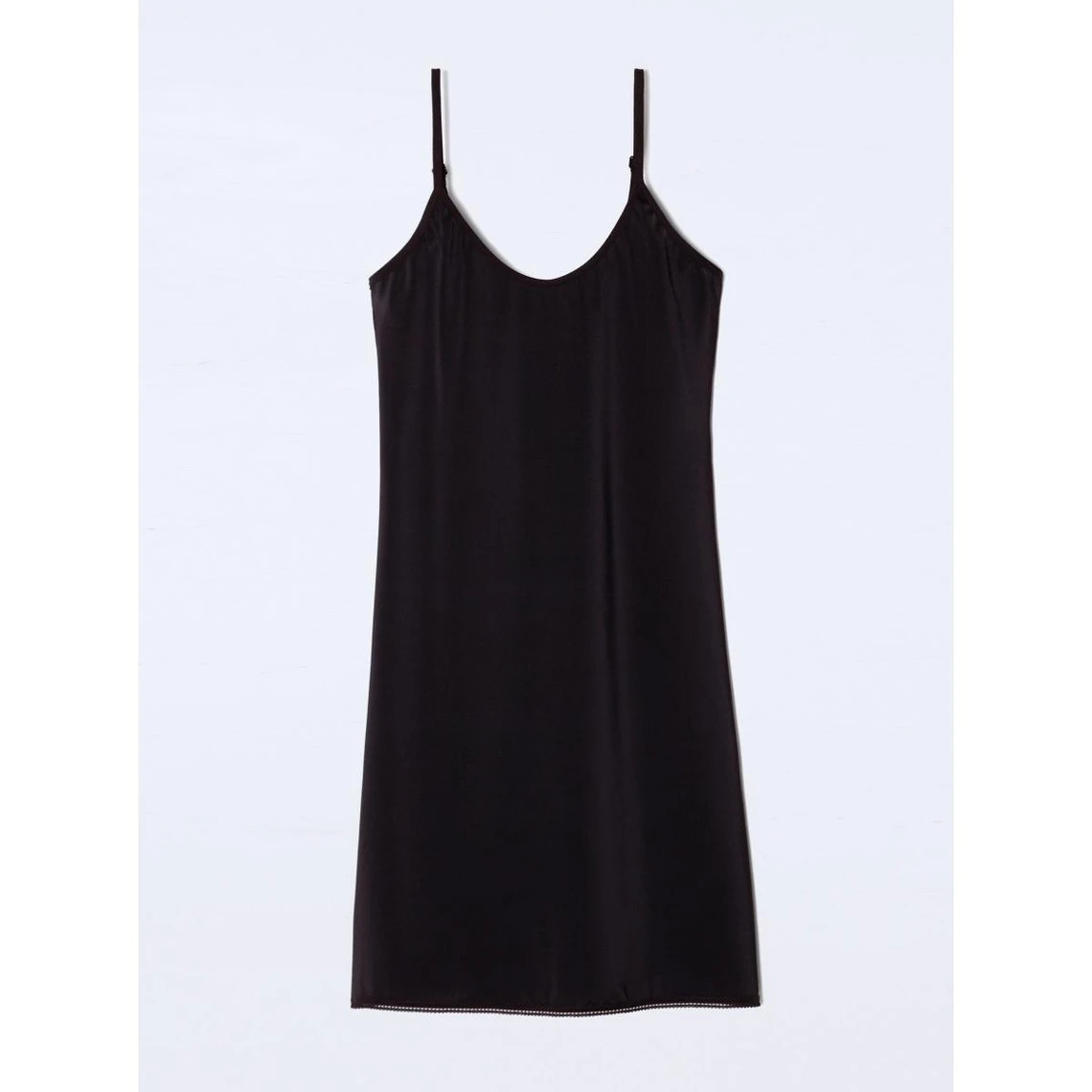 Combinaison courte. Large encolure arrondie devant, droite dans le dos. Fines bretelles ajustables. Effet réducteur. Invisible sous les vêtements. Maille élastique. Longueur 82 cm environ.
