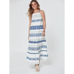 Décolleté halter Réglable à la nuque Sans manches Pans froncés à la base Imprimé frises Bas élastique aux finitions ondulées Doublure en doux tissu voile Doublure en 100 % coton Tissu batiste