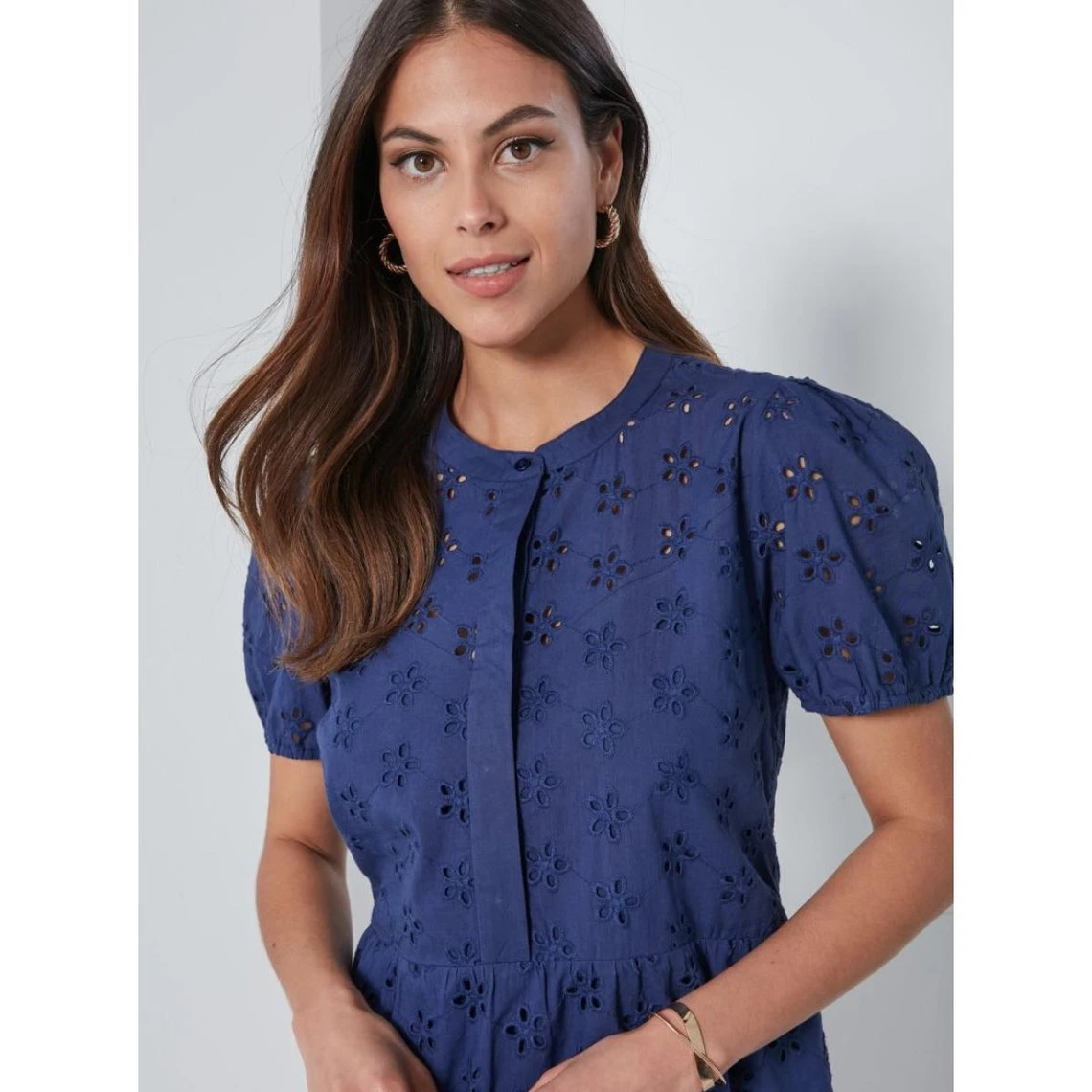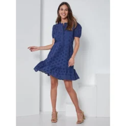 Cette robe en tissu brodé suisse est le choix idéal pour la mode la plus romantique et la plus flatteuse de la saison, de manière naturelle. Col Mao Patte de boutonnage à la taille Froncée à la ta
