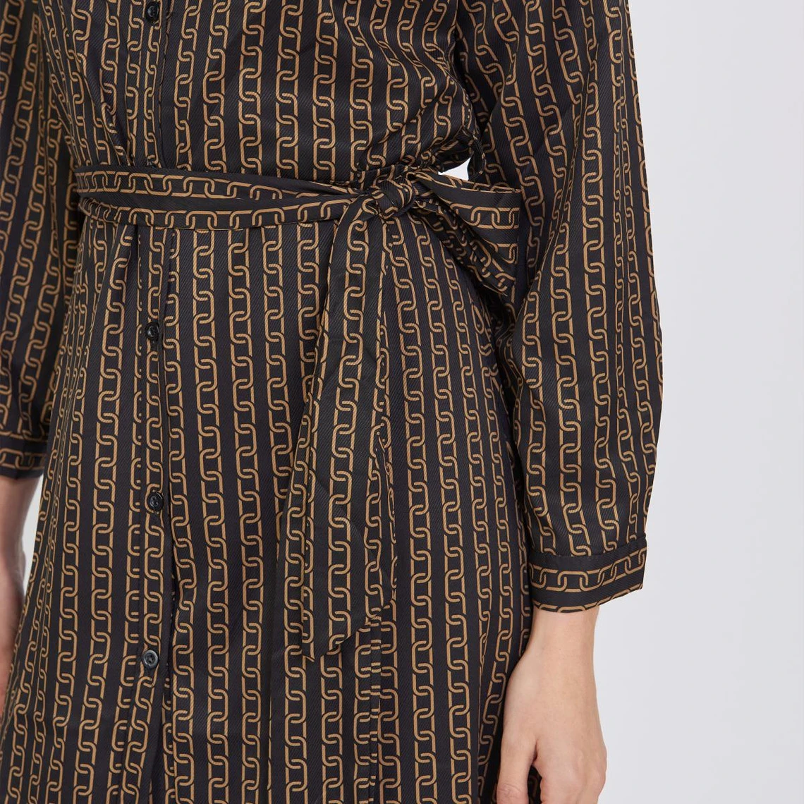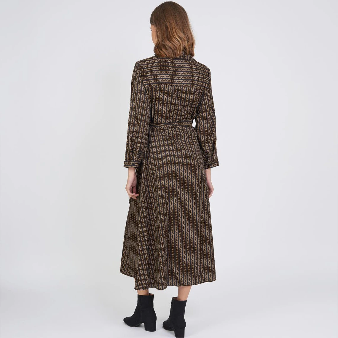 Robe chemise boutonnée devant, longueur midi, imprimé graphique.