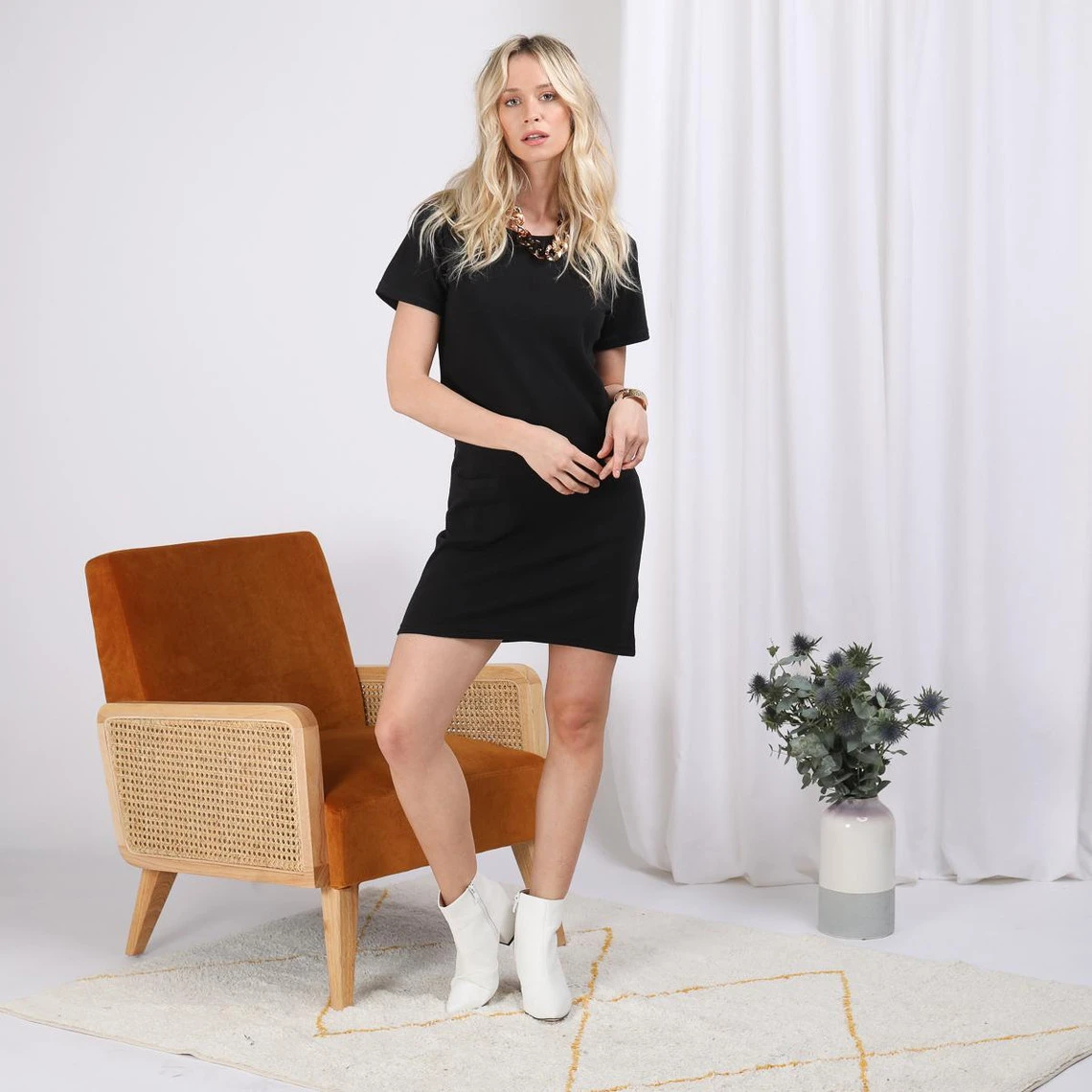 Encolure arrondie Manches courtes Poches à rabat passepoilées sur l’avant Couture centrale dos Bas droit En molleton 100 % coton Longueur : 88 cm environ