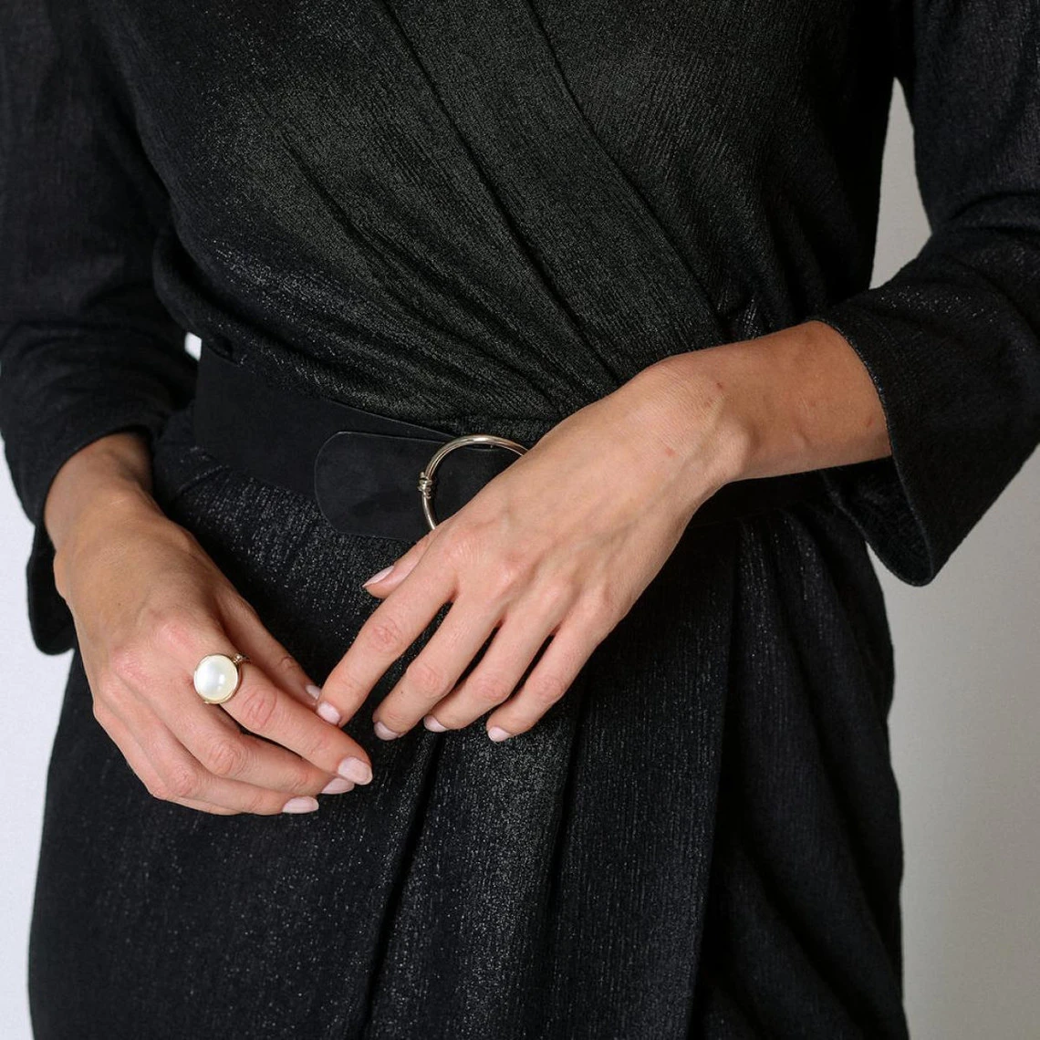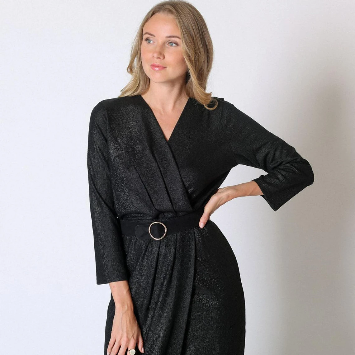 Robe portefeuille longue croisée devant, taille élastiquée.