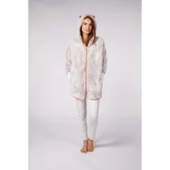 Voici la Robe De Chambre Manches Longues Femme en Coton Beige et Orange de la marque Dodo Homewear, un indispensable pour un sommeil douillet et reposant en hiver et pendant les inter saisons.