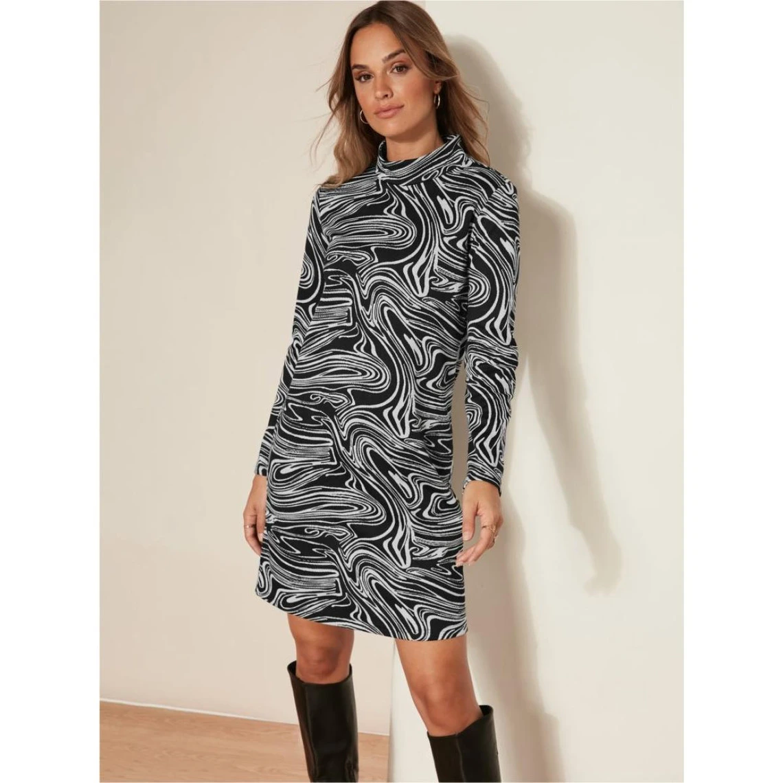 Col Perkins Manches longues Fermeture éclair invisible dans le dos. Fermeture en haut du col Design jacquard. Adaptable, maille Milano élastique 98 % polyester, 2 % élasthanne ongueur 90 cm en