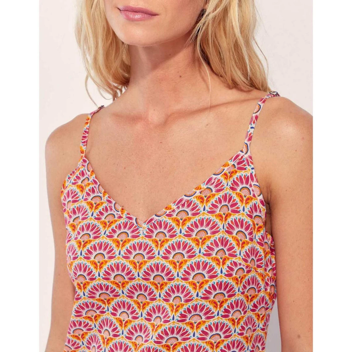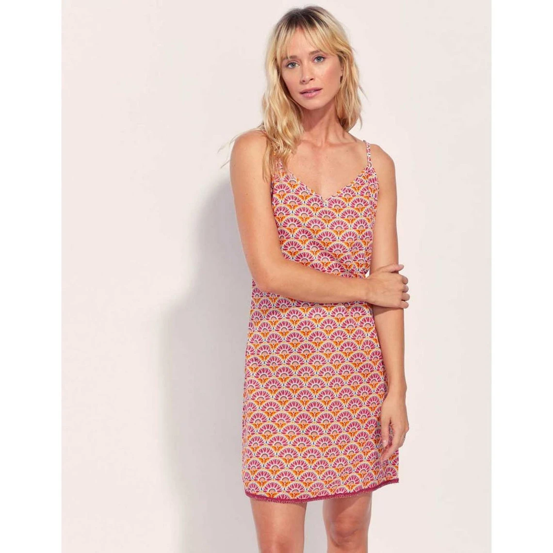 Robe d’été colorée, à la fois légère et douce en voile de coton biologique, facile à porter pour toutes les morphologies avec ses fines bretelles ajustables.