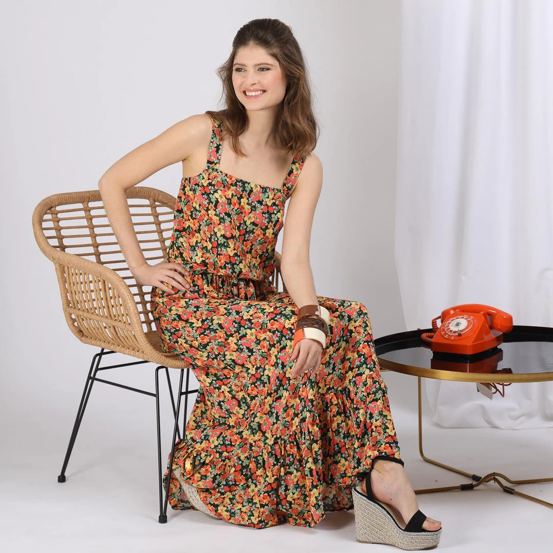 - Robe longues fines bretelles en viscose imprimée
