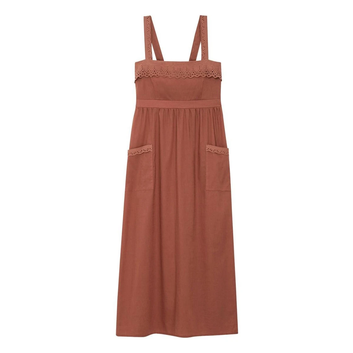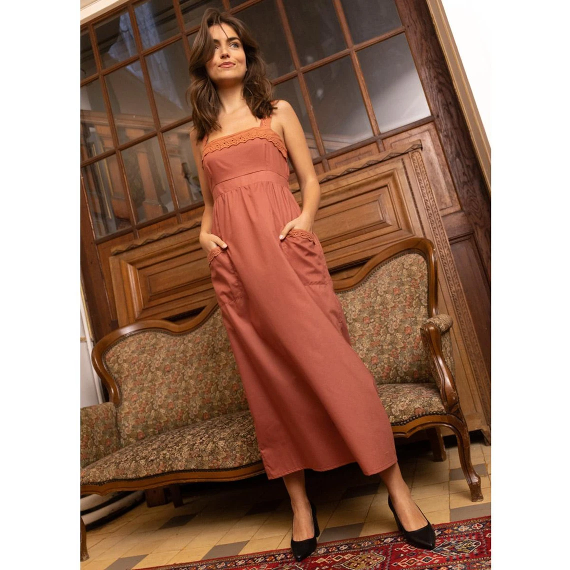 La longueur midi fait référence à une longueur particulière qui se situe entre le genou et le mollet. Une longueur ultra flatteuse et terriblement chic ! Le comble du ravinement ? Le détail de la broderie du col, des bretelles et des poches. On succombe ?