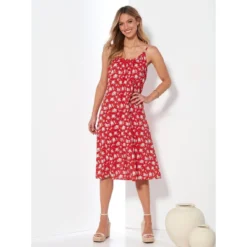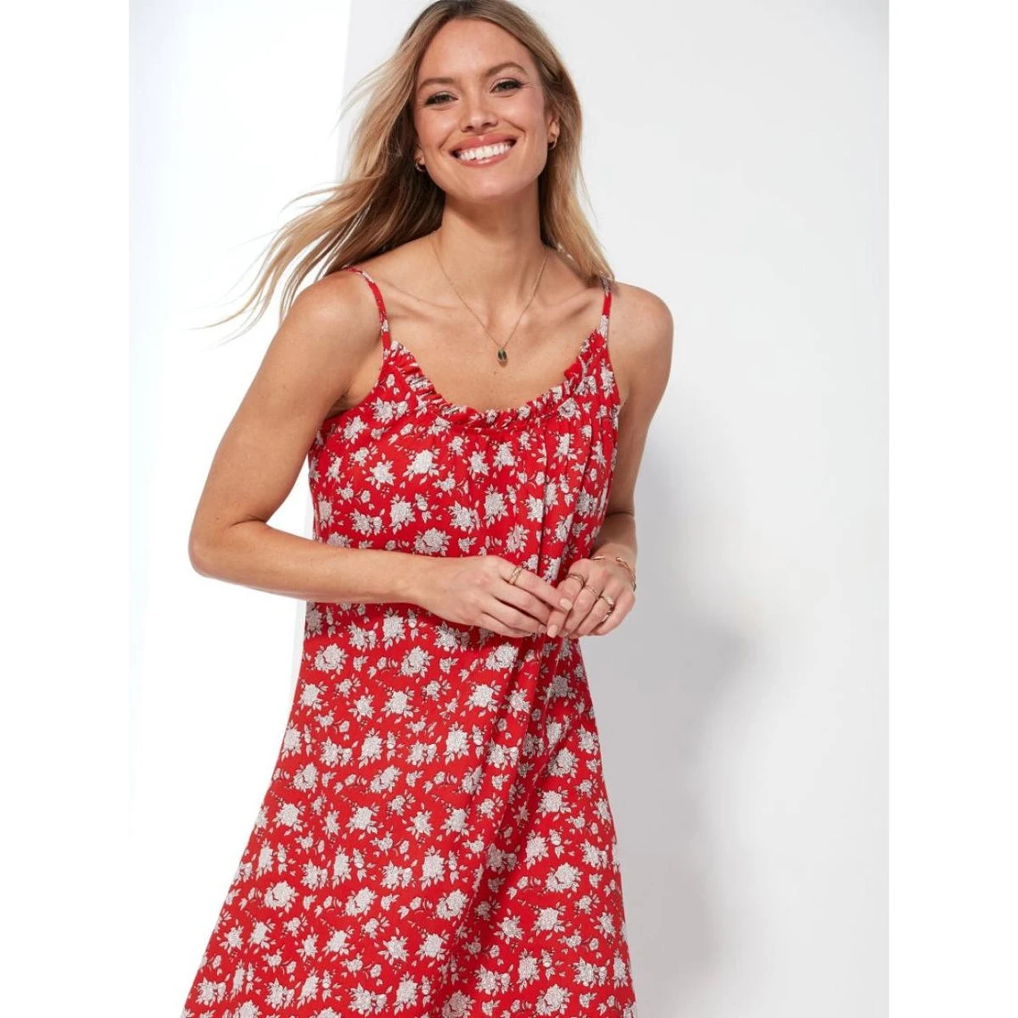 Bretelles réglables Encolure arrondie sur le devant Encolure droite dans le dos. Volant autour de l’encolure Imprimé à fleurs ongueur midi Tissu agréable à porter 100 % viscose. ongueur : 11