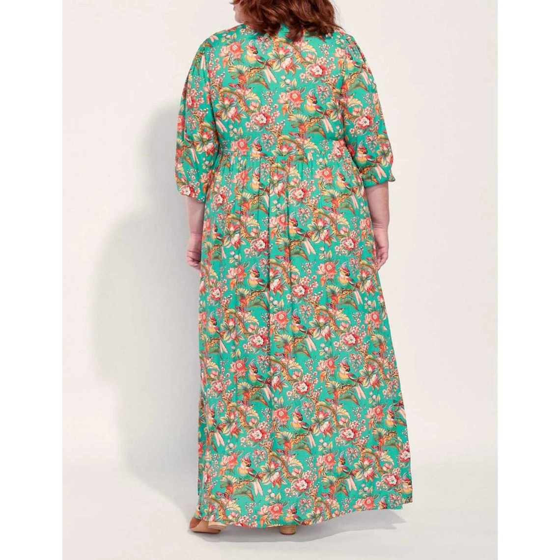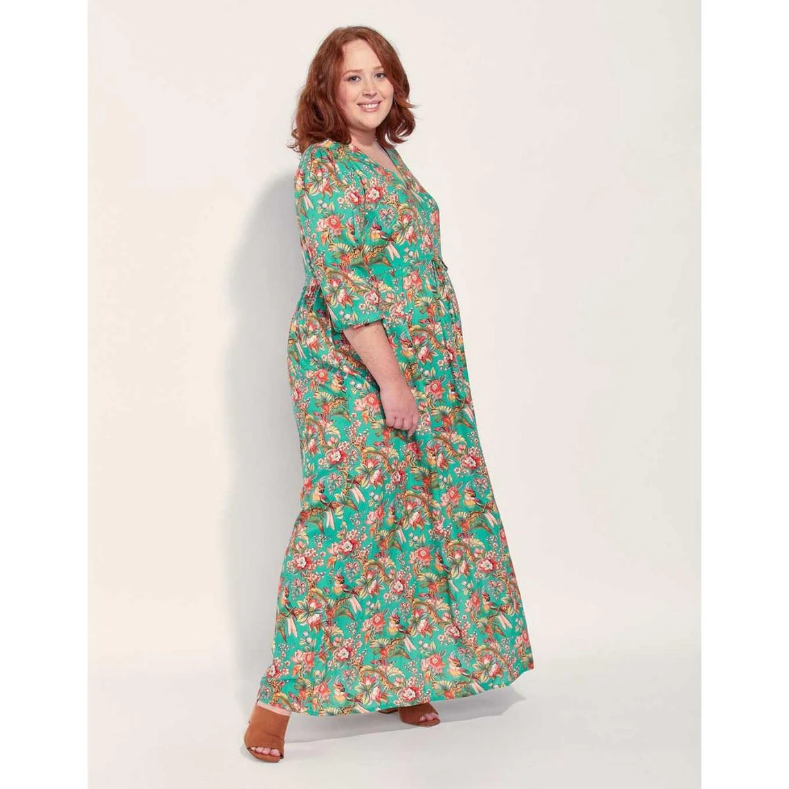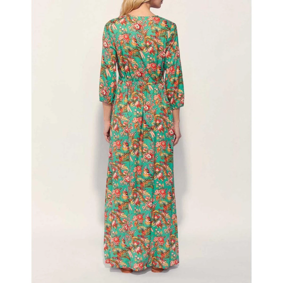 Robe longue femme confortable avec sa matière fluide et douce Ecovero, et aux détails fantaisies tout en féminité avec ses fronces aux épaules et son lien se serrage à la taille haute. Une robe élégante et lumineuse dans un imprimé qui illuminera votre dressing.
