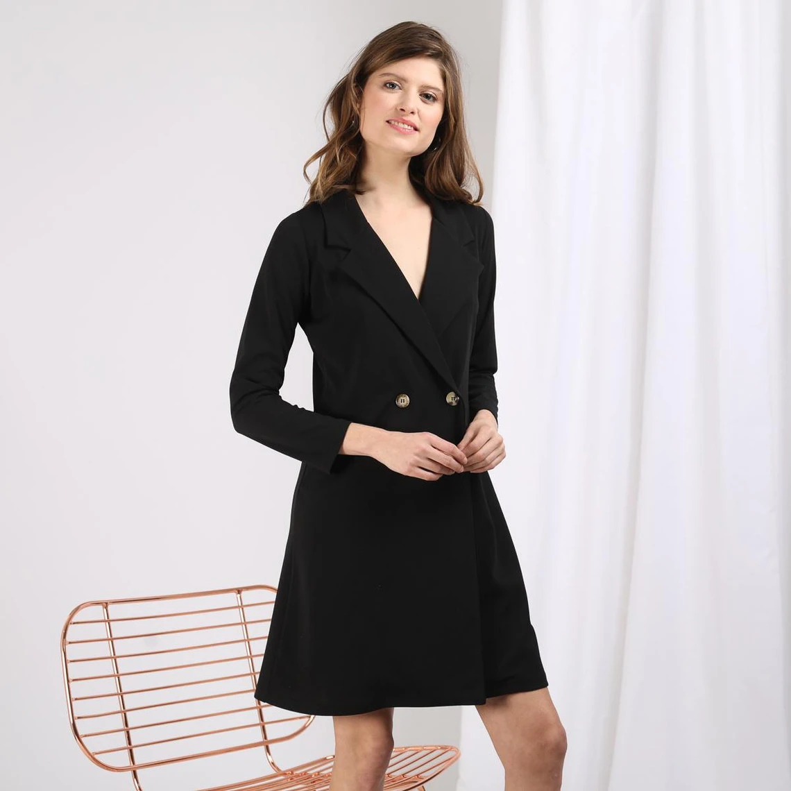 Robe courte croisée façon tailleur avec deux boutons sur le devant.